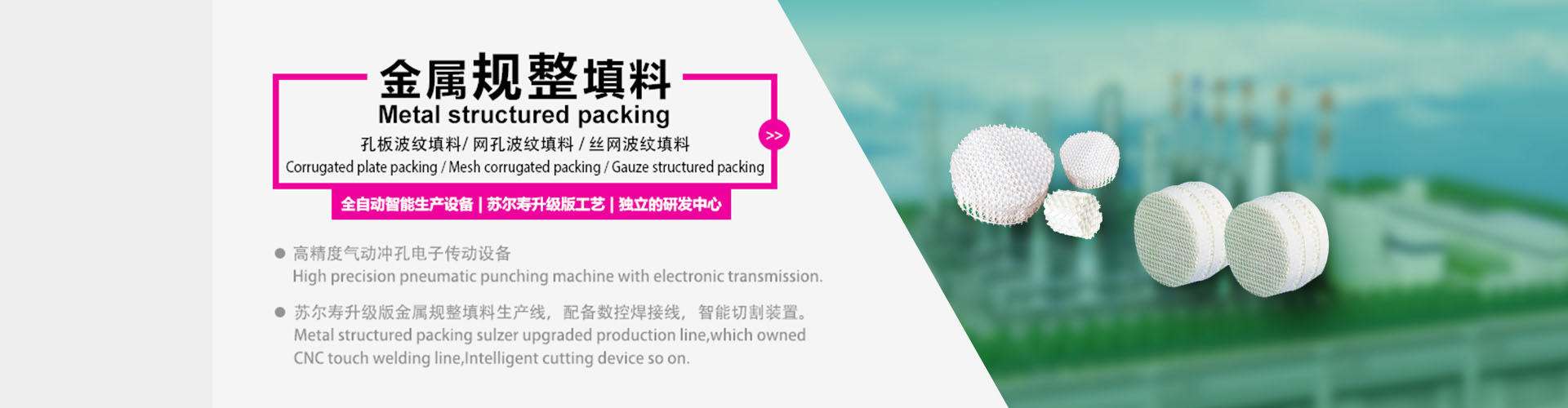 萍鄉市松潤化工填料有限公司位于江西省萍鄉市國家經濟開發區西區,是專業生產、經營陶瓷、聚丙烯、金屬填料、塔內件、水處理濾板、濾管、濾料、瓷球、分子篩、催化劑、活性炭、蜂窩陶瓷、瓷質耐磨托輥等系列產品的民營企業。所有產品由國家非金屬材料和設備質量監測中心監測檢驗認證。公司現有員工280人,其中有高、中級職稱技術人員36人。工藝先進,技術力量雄厚,產品質量可靠,配...
